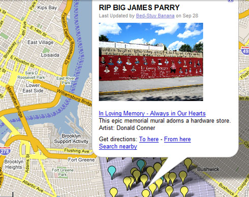 Even that her “kids” took great R.I.P. pictures in Brooklyn, she did some research on the web and found one of the best uses of a Google Map Mashup: