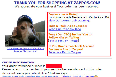 Besides having a BBB certificate, free both way shipping, customer testimonials, live help/chat, phone number with 24hrs support, free returns…..Zappos.com really understood what makes the difference and how to build trust: